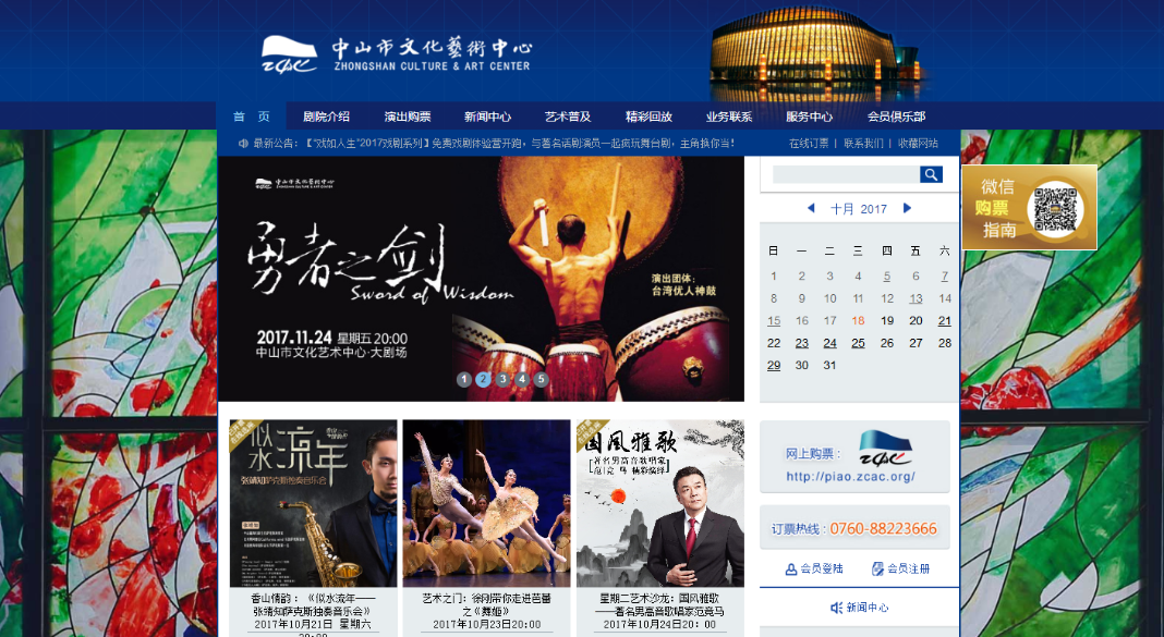 点击链接进入中山文化艺术中心网:http://www.zcac.org/