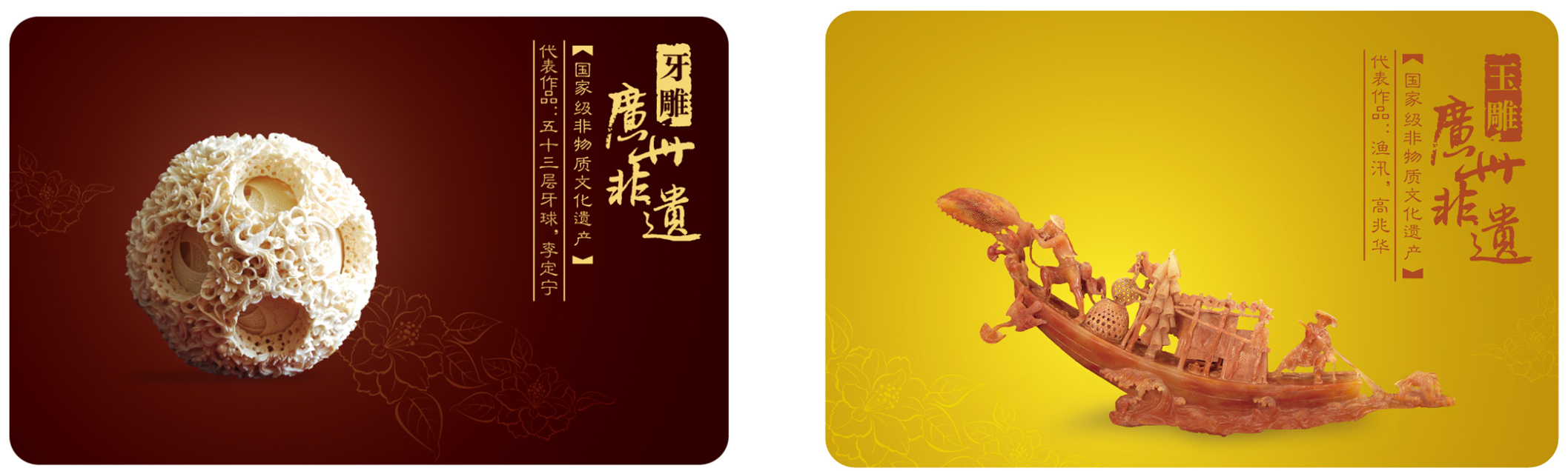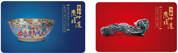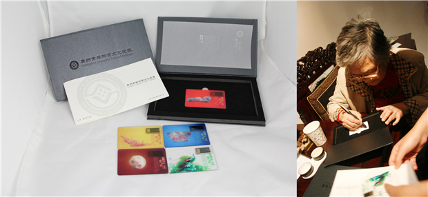 文木选取了广绣、广彩、玉雕、牙雕、木雕五个具有代表性的国家级非遗项目,以名家名作为素材,制作了“广州非遗”系列卡片式U盘,以小小的卡片为载体,将玉雕的通透玲珑、广彩的金碧辉煌、广绣的色彩缤纷、牙雕的细腻温润、木雕的巧夺天工都表现得淋漓尽致。量身定做的包装盒里,还附有介绍广州市非物质文化遗产概况的小册子。