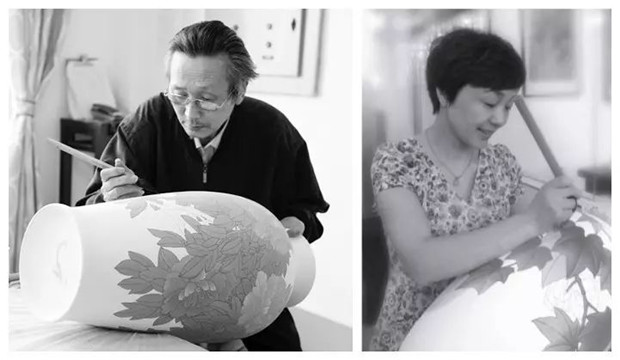 (国家非物质文化遗产“醴陵釉下五彩瓷烧制技艺”国家级传承人陈扬龙以及其女陈利)