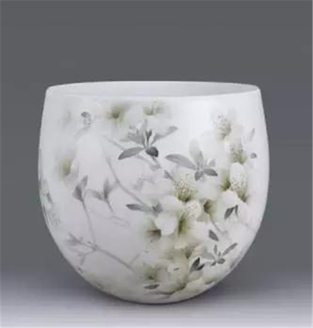 她设计制作的花瓶胎薄、色白,