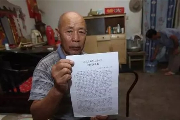 近几日,微博、微信等社交媒体上一张照片被热传——白发老人手捧一纸公文,末尾两行内容是“上诉人(原审被告人)杨风申犯制造爆炸物罪,但免予刑事处罚。本判决为终审判决。”