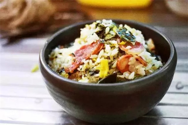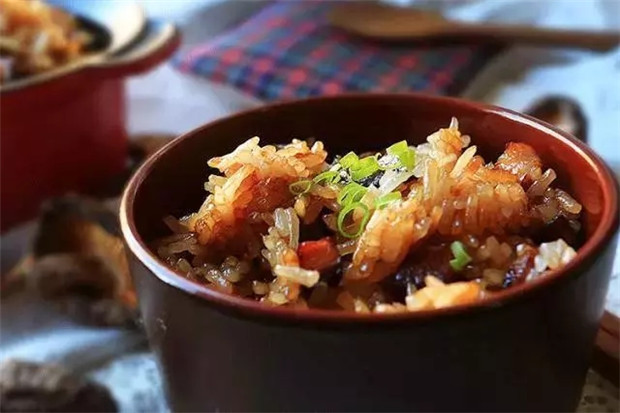 广州传统,小寒早上吃糯米饭,一般是60%糯米和40%香米,把腊肉和腊肠切碎炒熟,花生米炒熟,加一些碎葱白,拌在饭里面吃。