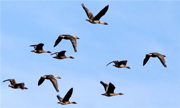 一候雁北乡:古人认为候鸟中大雁是顺阴阳而迁移,此时阳气已动,所以大雁开始向北迁移。