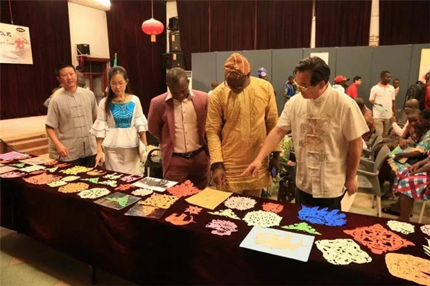 贝宁文化部部长代表巴比奥等贵宾参观培训学员剪纸作品展览