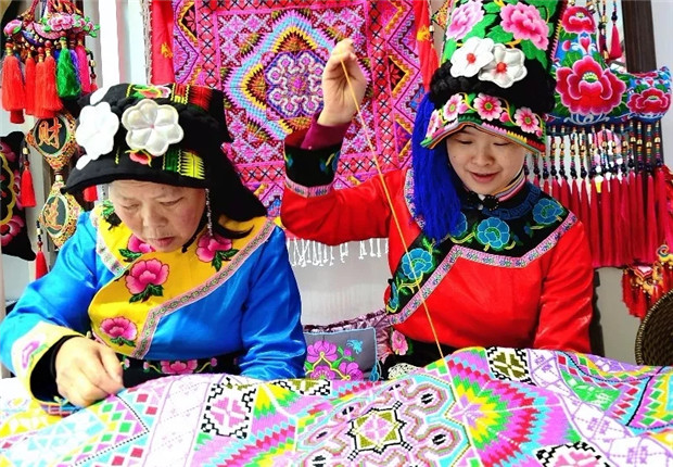 传统工艺工作站在助推精准扶贫工作中也发挥了重要作用。目前,新疆哈密工作站累计培训绣娘5000余名,设计出798款运用哈密元素的刺绣新产品,下达绣片订单3.2万份。湖南湘西工作站启动“让妈妈回家”计划,通过提高绣娘收入,吸引外出务工妇女回归家庭。此外他们还与济南、深圳等地公司洽谈苗族刺绣订单2800套(件),金额达50万元,带动农村妇女在家门口就业160余人。