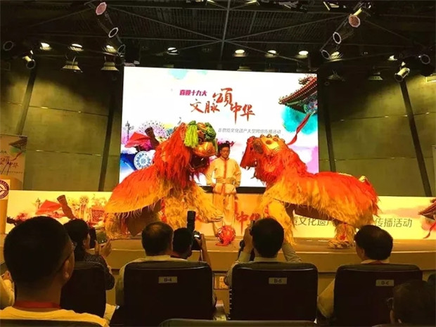 为积极宣传我国非遗保护成就,迎接党的十九大胜利召开,文化部、中央网信办于9月联合主办了“喜迎十九大•文脉颂中华”非物质文化遗产大型网络传播活动。中央网络媒体分四路,赴贵州、福建、山西、湖北开展非遗采访活动,全国1000余名记者通过实地走访、参观体验,展示我国非物质文化遗产的独特魅力,网上媒体报道量51.6万篇,相关话题阅读量5981万人次,点击量过亿次,提高了群众对非遗的参与度和认同感。