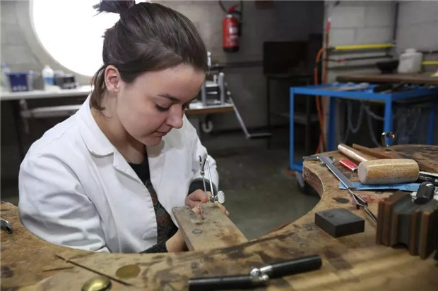 19岁的法国姑娘玛丽娜·德勒福尔蒂在学习制作珠宝制作工艺