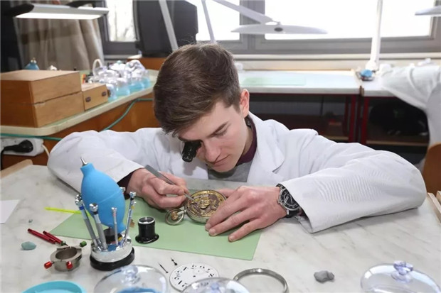 钟表专业是纳穆尔技术与手工艺学校的特长专业,是培养比利时“钟表师”的摇篮。记者在钟表工艺专业教室见到了20岁的亚历山大。亚历山大的爷爷是钟表匠,父亲是古旧家具修理工,家里有从事手工业的“传统”。亚历山大外表看上去老成持重,但那只是欺骗人的假象——他从小就是个“破坏狂”。据他讲,小时候家里没有一件完整的“机器”,钟表、收音机、照相机,凡是带响的都被他拆解。父母没办法,小学毕业后,决定把他送到技术与手工艺学校,让他学会如何把小时候拆卸的东西都重新装好!而这也恰好极大地满足了亚历山大的好奇心。一入校,小亚历山大就跑到“钟表工艺教室”,墙上挂的滴滴答答的各类钟表和工作台上琳琅满目的精巧工具让他眼睛发亮。他东摸西碰,仿佛进入了钟表童话王国。当然,很快就被高年级学生赶出教室。学校规定,学习钟表专业要打好理论基础,钟表制作和修复专业只能从初三开始。因此,亚历山大不得不“耐心地”学完了全部的基础专业技能课程。亚历山大在回忆这段经历时说,不能把职业技术学校视为“简单和平淡”,任何一门技能都要有长期积累的过程,欲速则不达。