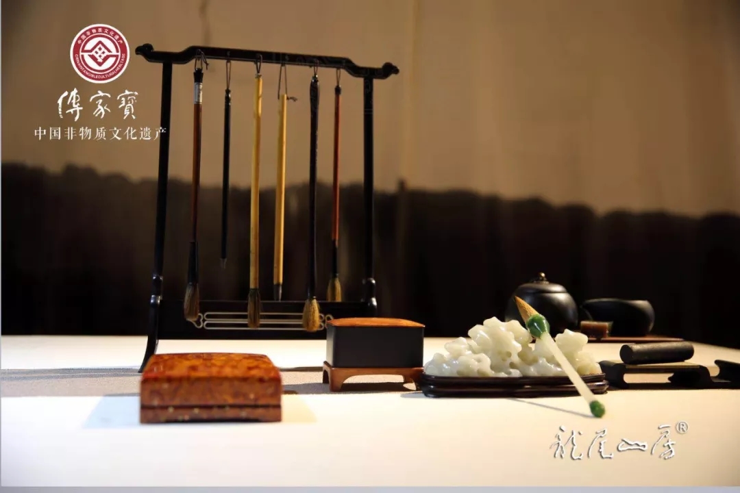 文房四宝展区邀请著名砚刻家胡中泰现场制砚、拓片,呈现“笔墨纸砚”的魅力;