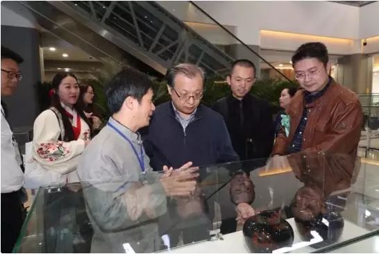 文化和旅游部非遗司王晨阳副司长、清华导师陈岸瑛、杨佩璋与非遗研修班学员章国华讨论作品
