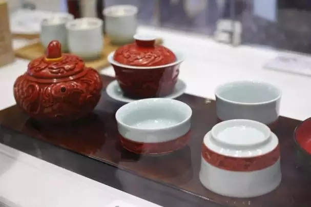 《云水弄潮茶具》朱江,雕漆工艺