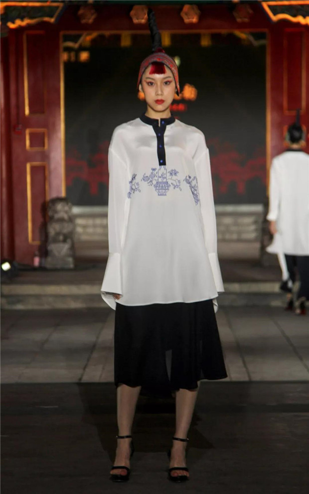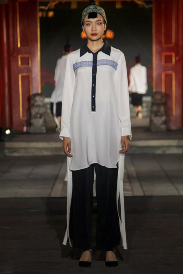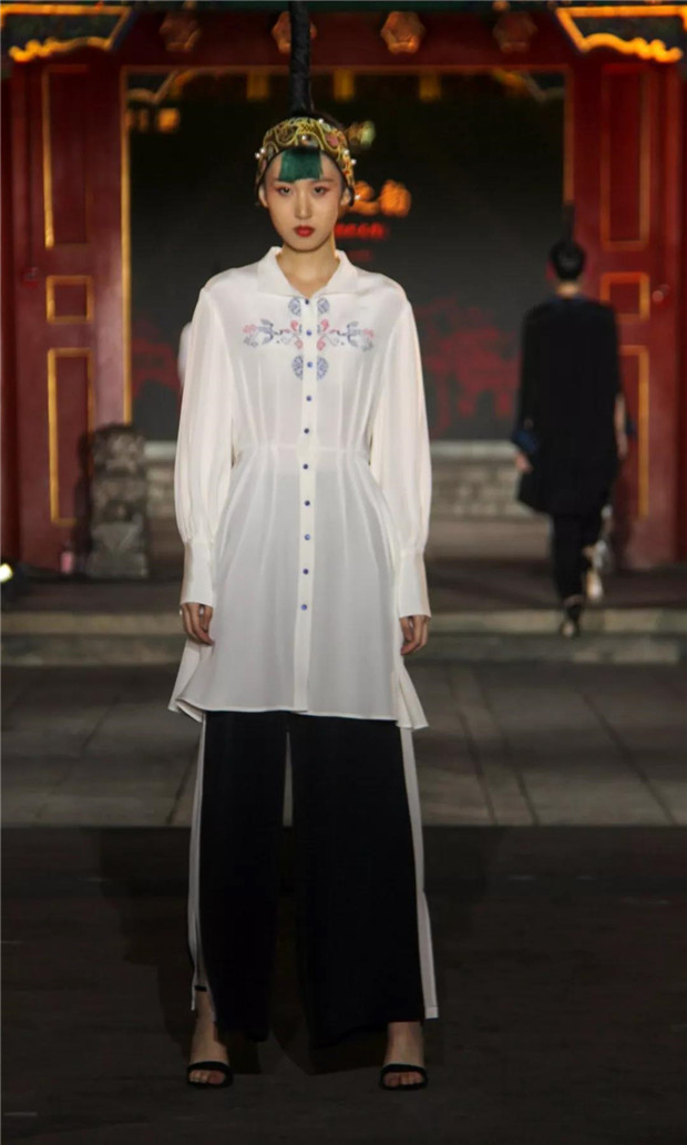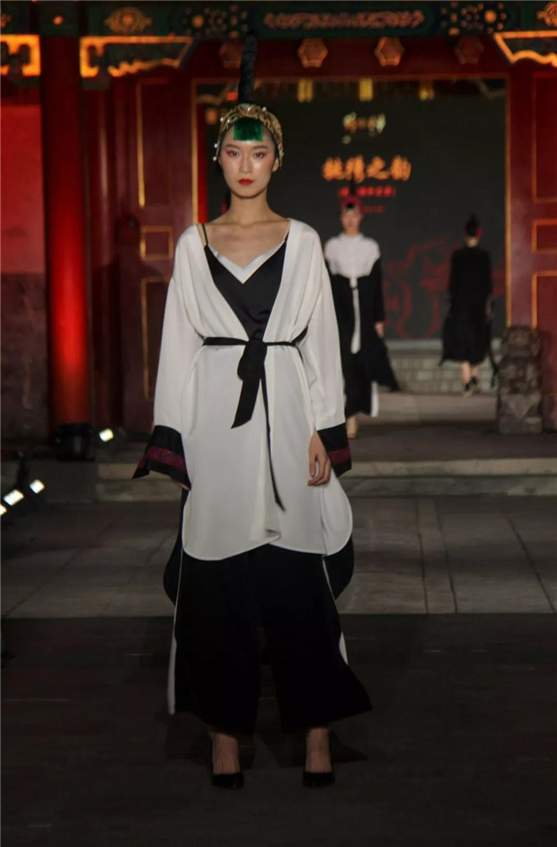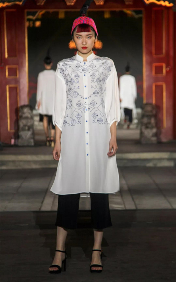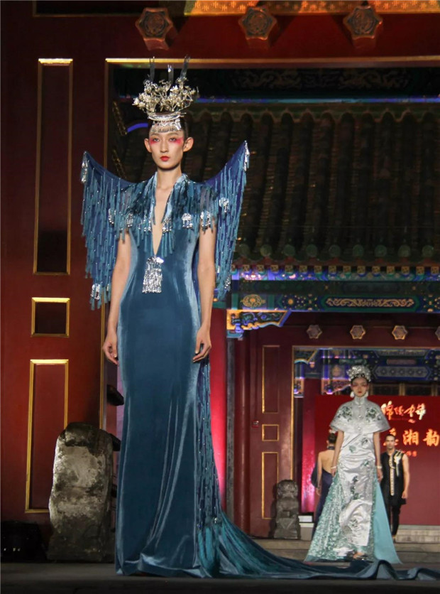 T台上的服装服饰,其设计灵感来源于湘西历史文化和苗绣精湛技艺,镌刻着历史的温度。湘西众多的古镇、古村落是湘西历史的黑白剪影,泸溪浦市的雍容华贵,龙山里耶的古朴敦厚,边城茶峒的幽寂典雅,芙蓉王村的风韵别致,以及高低错落的土家族转角楼,浑然天成的苗族岩板屋都是人与自然和谐的杰作,尤其是苗族文化的重要组成部分苗绣是中华服饰文化的瑰宝,这些都令设计师无比感动。