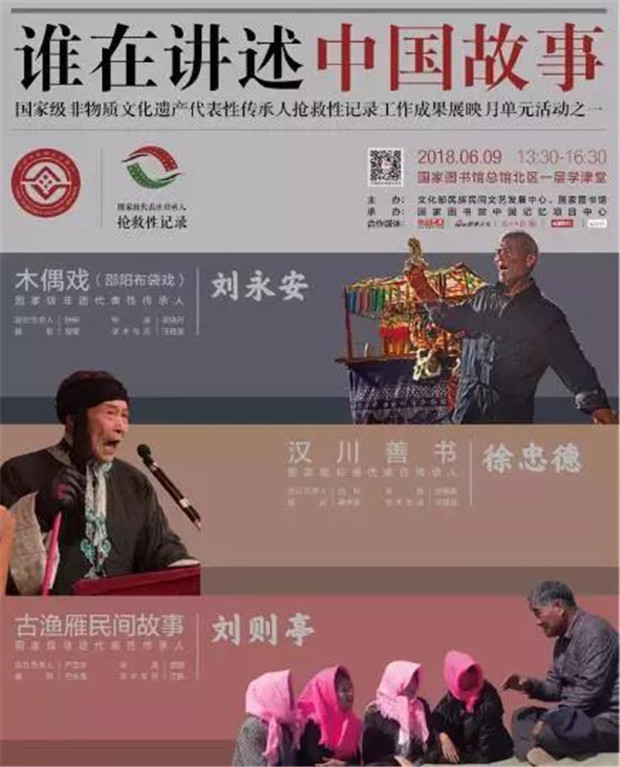 本场活动邀请到古渔雁民间故事、汉川善书、木偶戏(邵阳布袋戏)三个抢救性记录项目的主创团队、国家级代表性传承人以及中国艺术研究院研究员王馗老师,与观众交流和分享,通过民间文学、曲艺和传统戏剧的优秀作品讲述中国传统故事、弘扬传统文化,为观众带来一场非遗影像盛宴。
