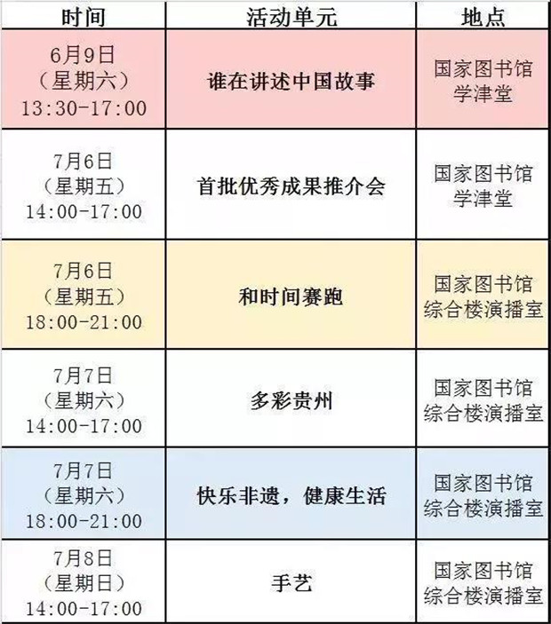 其中,主题活动单元会有主创团队、学者和传承人到场交流,传承人也会现场展示技艺风采。首场主题活动“谁在讲诉中国故事”将于6月9日13点30分在国家图书馆学津堂举办。