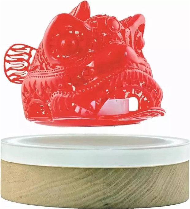 记者看到,磁悬浮狮头是以3D打印出狮头,加入磁悬浮技术的摆件。在磁悬浮的作用下,狮头与底座间隔着一定距离并且不停地转动,蕴藏着精益求精的匠心与人文情怀。欧琦辉表示,那个3D打印的狮头从构思到成品出炉,欧琦辉的团队花了整整5个月时间。用3D打印技术打印篮球大小的狮头,需要整整一天。其中的技术难度很大,这个狮头内部就有3000多根柱子,力学走势稍有偏差,狮头便会崩塌。如今加上这个磁悬浮技术,光磁悬浮技术就花费了半年多的时间。