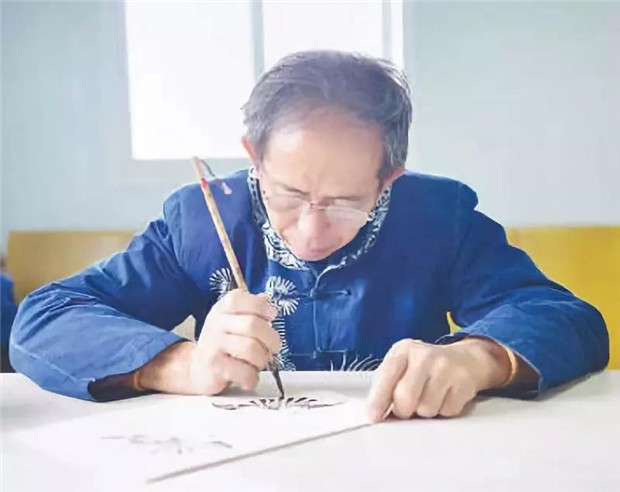 杨光成在绘制枫香染图案(布依族)
