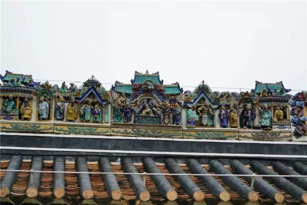 △粤剧艺术博物馆建筑上的石湾陶 (央视记者沈忱拍摄)